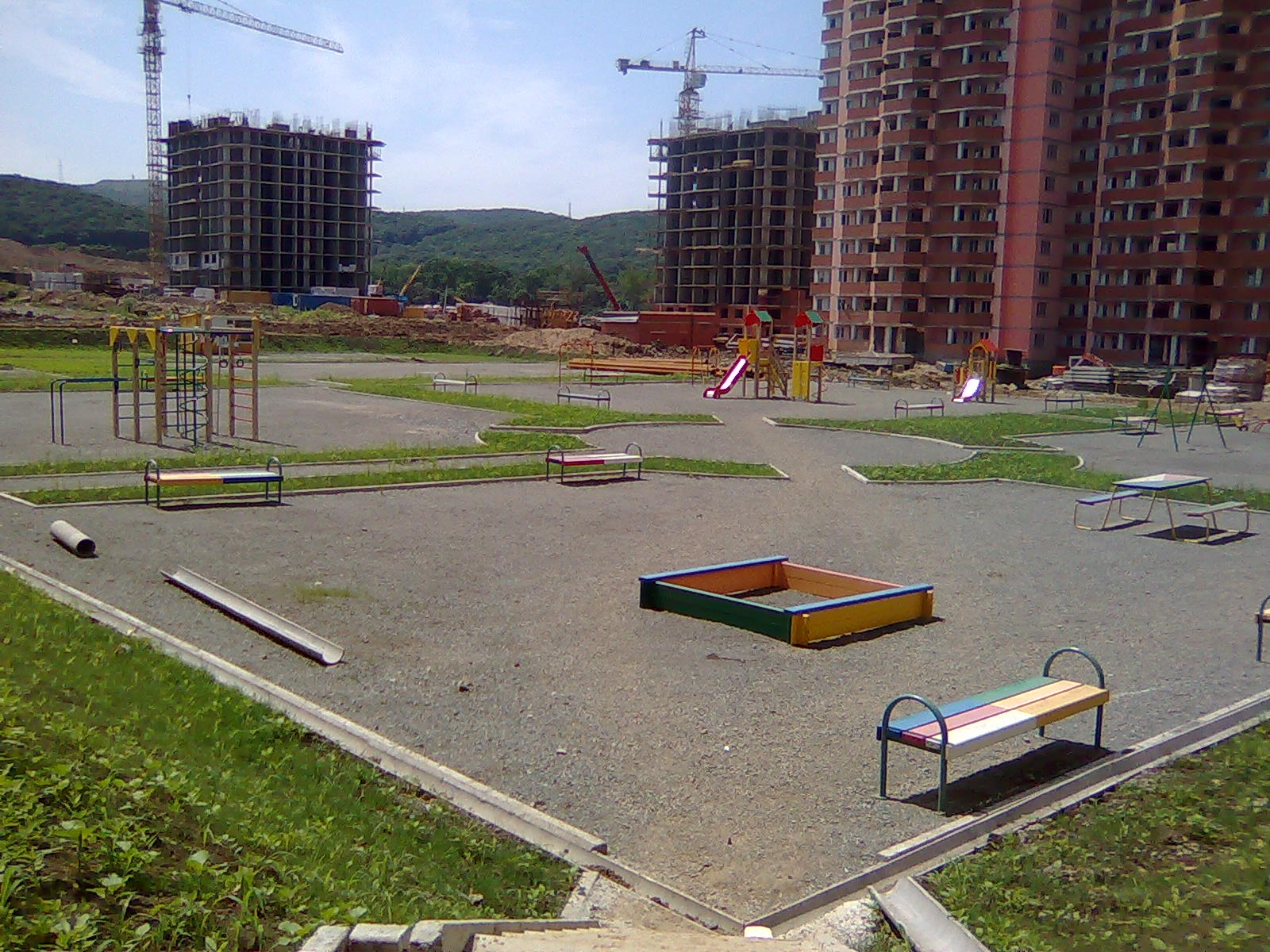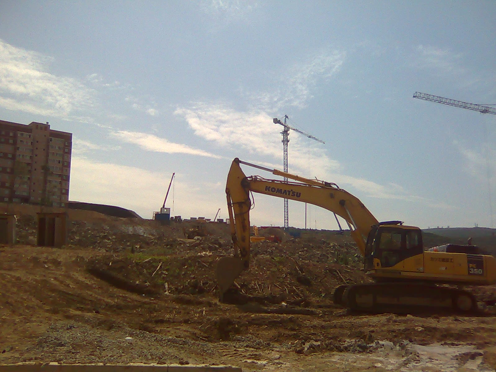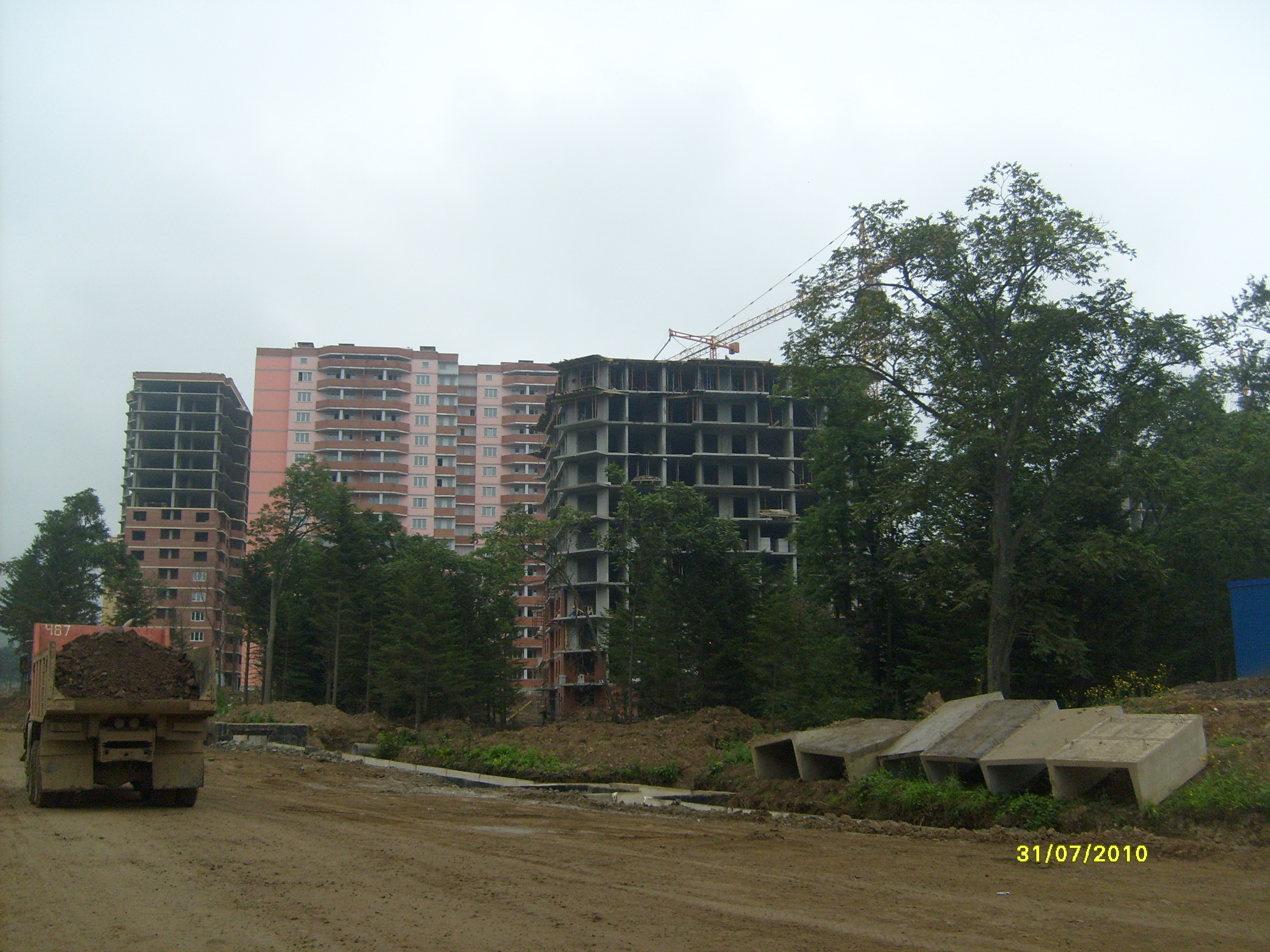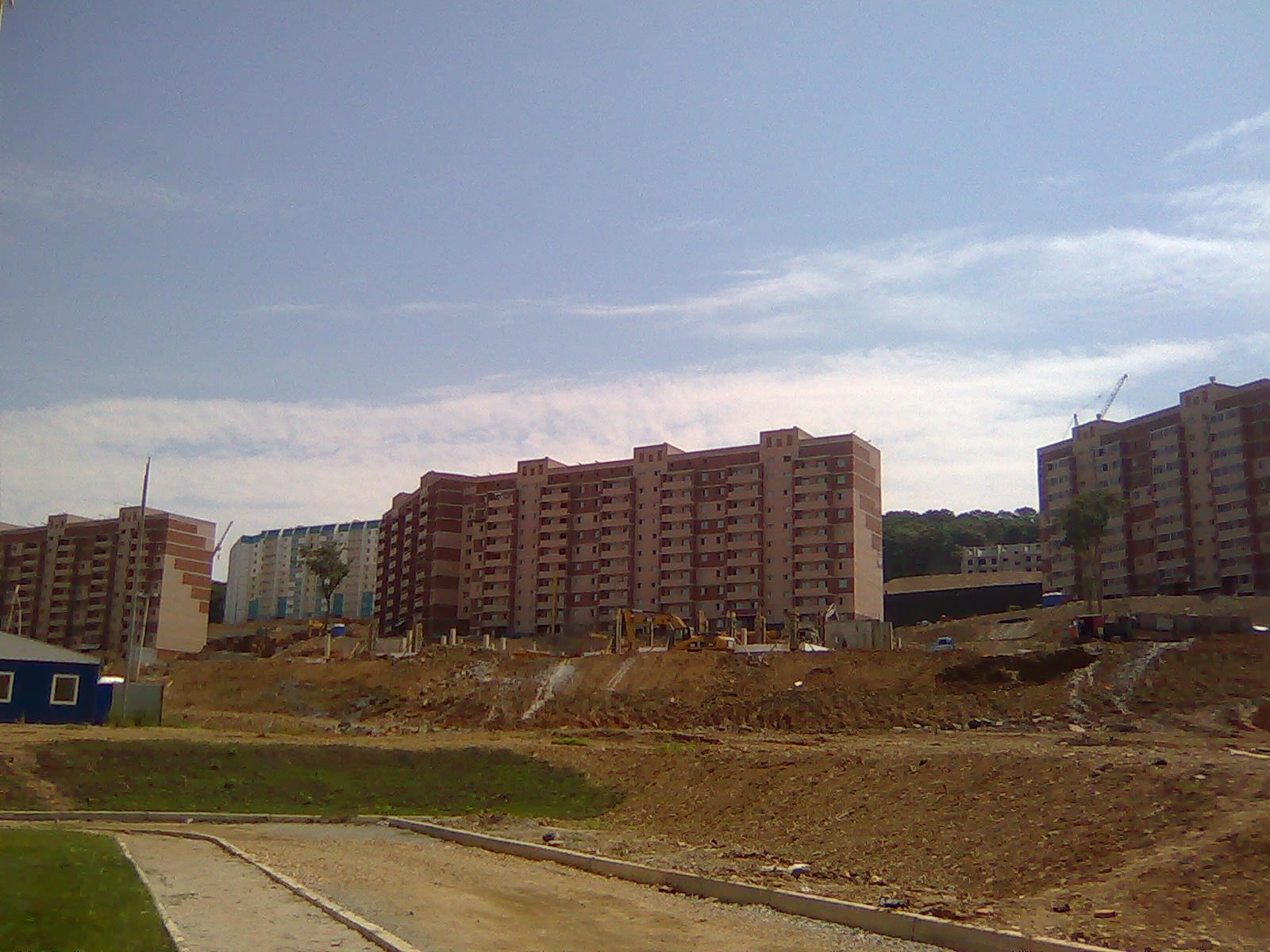 О хорошем... размах работ впечатляет... Дома растут как грибы, дорога более -менее сухая, пройти к домам можно, газончики между 34 и 36 домами зеленеют... Рабочие сказали, что коммуникации почти готовы, осталось только к городу подключить, а вот это уже неизвестно когда будет...