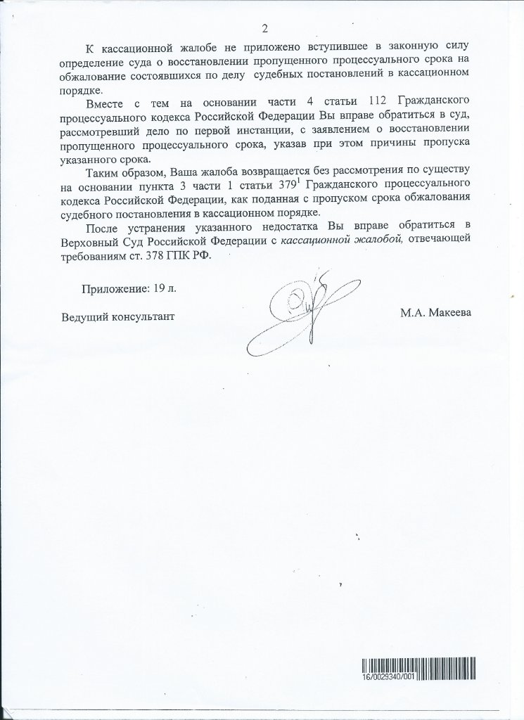 Ни какой № не "с потолка"! Просто срок подачи в ВС РФ просрачил! Можете ознакомиться: