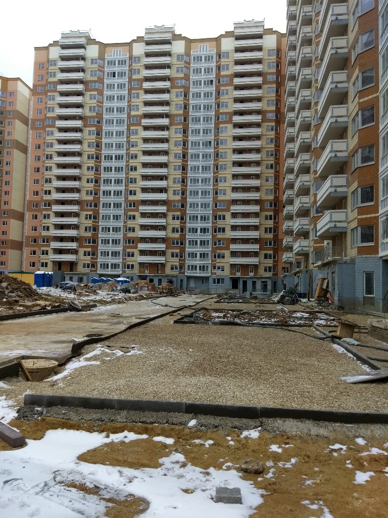 на прошлой неделе была такая же как и у 24(1)к, все залито и установлено, остался асфальт и газоны и "афтомобильчики на них для полноты картины",проезд с Дыбенко к первым подъездам 9к и дальше к 8к так и не открыт, держит территория 12к и его ограждение.QR_BBPOST а 12 корпус ... Придомовой территории не видел