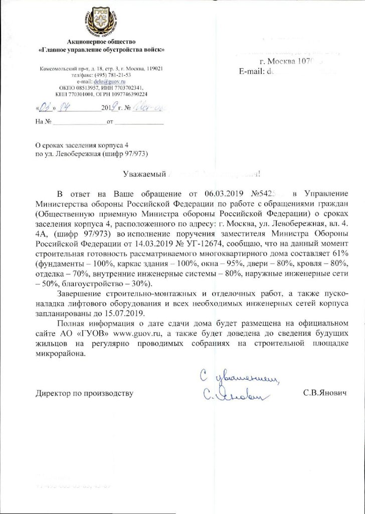 Сегодня пришел ответ. В ноябре 2018, обещали (письменно), готовность 4-го корпуса к 1 марта 2019, теперь все перенесли вправо, уже на 15 июля