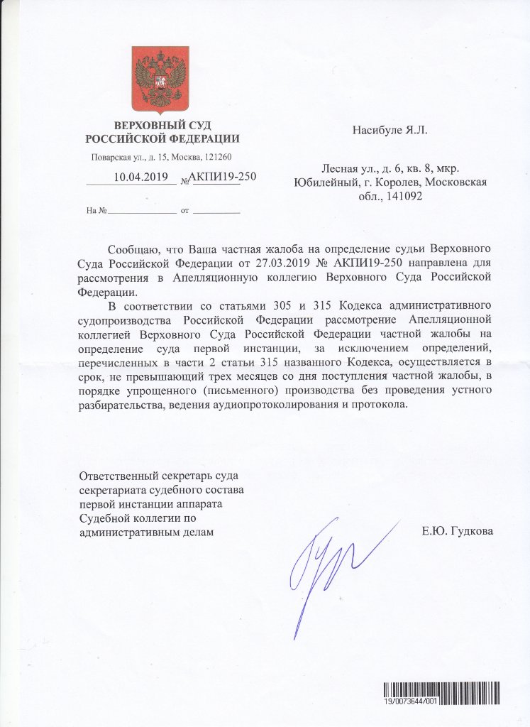 Сегодня получил уведомление из ВС РФ. Выкладываю для ознакомления.