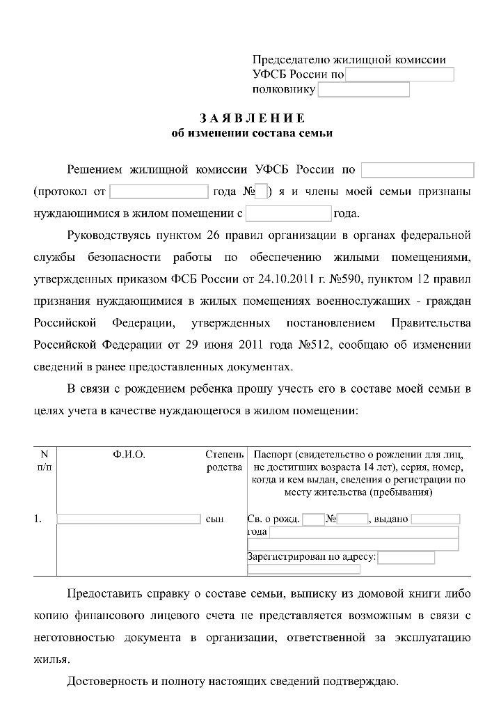 Признан ЖК нуждающимся в сентябре 2018 года. После родился ещё один ребенок! На основании какого пункта и приказа пишется рапорт (заявление) о признании ЖК ребенка нуждающимся? Может где есть образец рапорта (заявления). И у нас, в марте 2019 г. ЖС дали одному многодетному (в управлении (ВКР) он всего один был). Это первая выплата ЖС в истории управления.