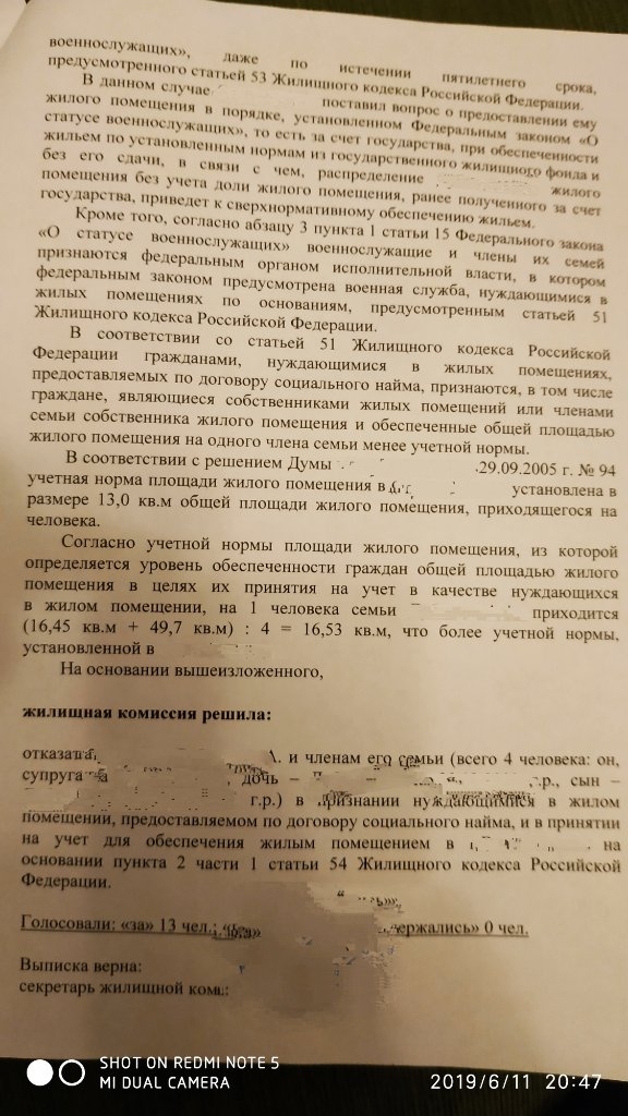 #7572Ну двушку эту продать и через пять лет на очередь. Она же не приватизированная? Куплена за свои?Добрый день. Подскажите пожалуйста на сколько правомерен отказ и что можно сделать чтобы признали нуждающимся?