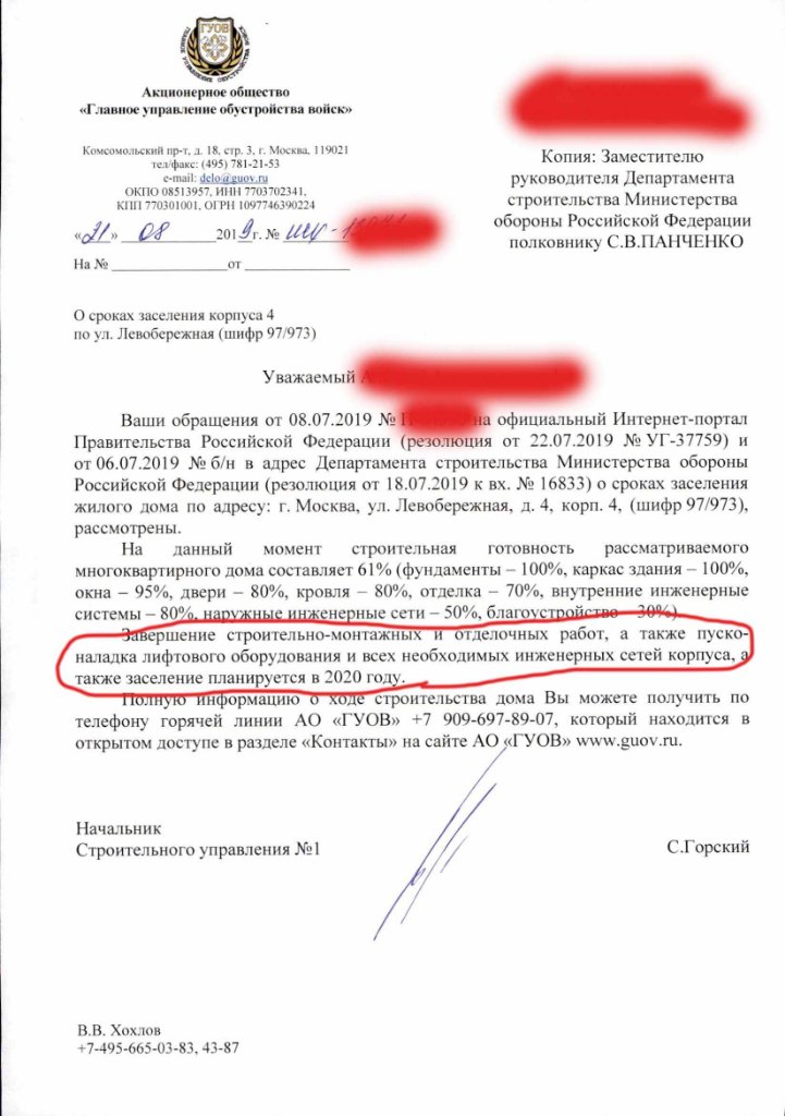 #53858Пришли ответы на мои запросы по срокам строительства корпуса 4. Три органа минобороны отвечали ( ГПУ МО РФ, Депстрой МО РФ и задротное ГУОВ) и три разных срока сообщили, соответственно - сентябрь 2019, конец 2019, и неизвестный месяц 2020 года.