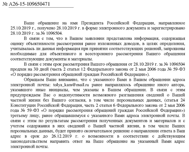 Честно говоря думал что отвечать будут под копирку. Ведь обращение было почти полностью аналогично за исключением одного абзаца.