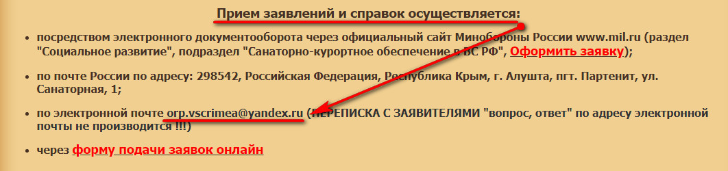 #9554А это тогда что на ОФИЦИАЛЬНОМ сайте санатория?QR_BBPOST Сегодня специально, с целью проверить правильность адреса эл. почты санатория "Крым", на который направили заявки, звонили на горячую линию ГВМУ. Подтвердили, что у санатория "Крым" электронный адрес для приема заявлений order@sancrimea.ru.