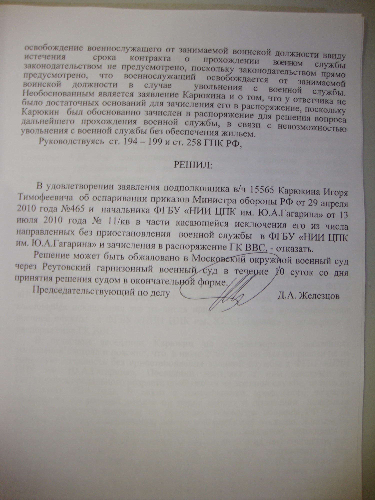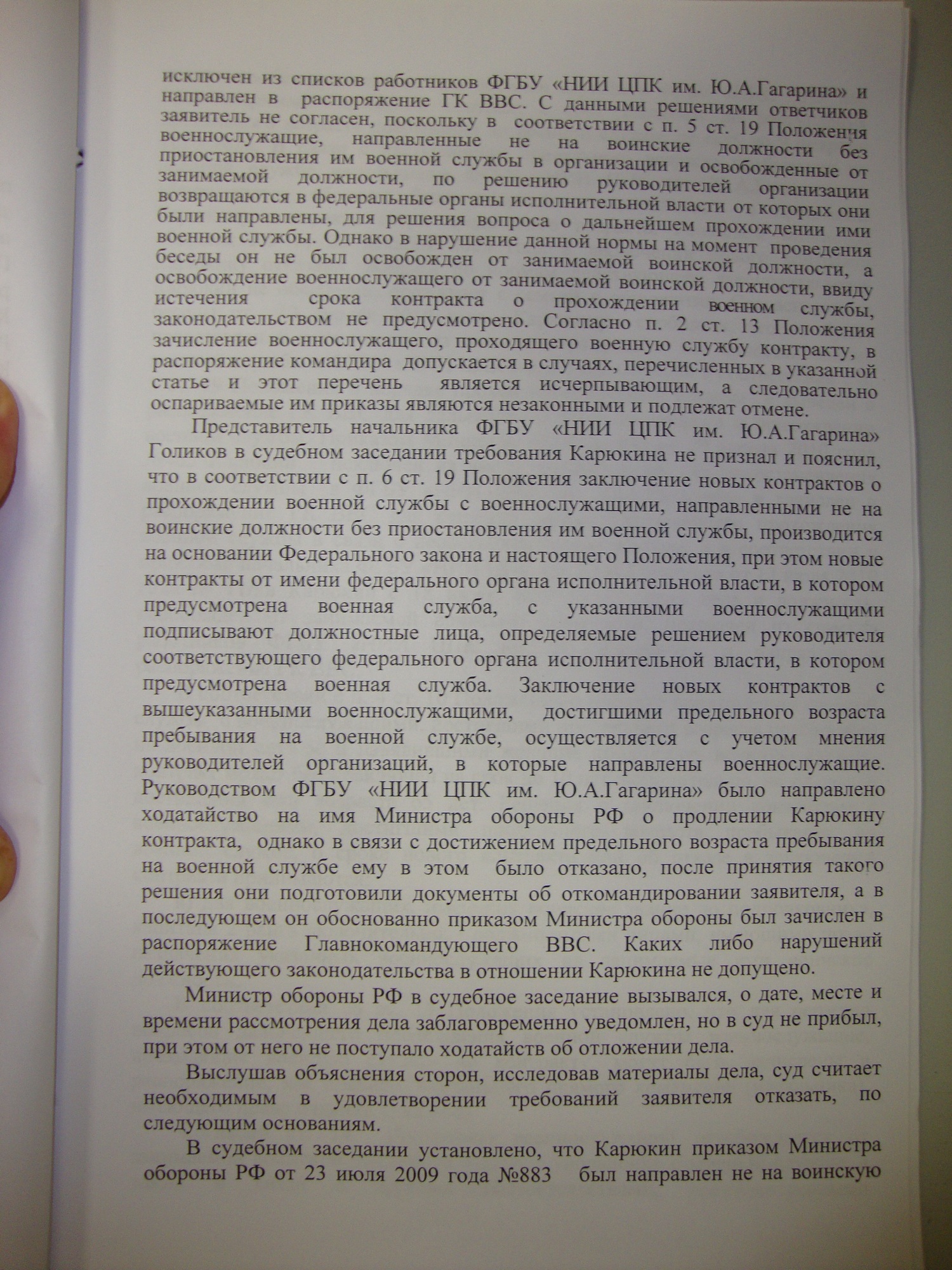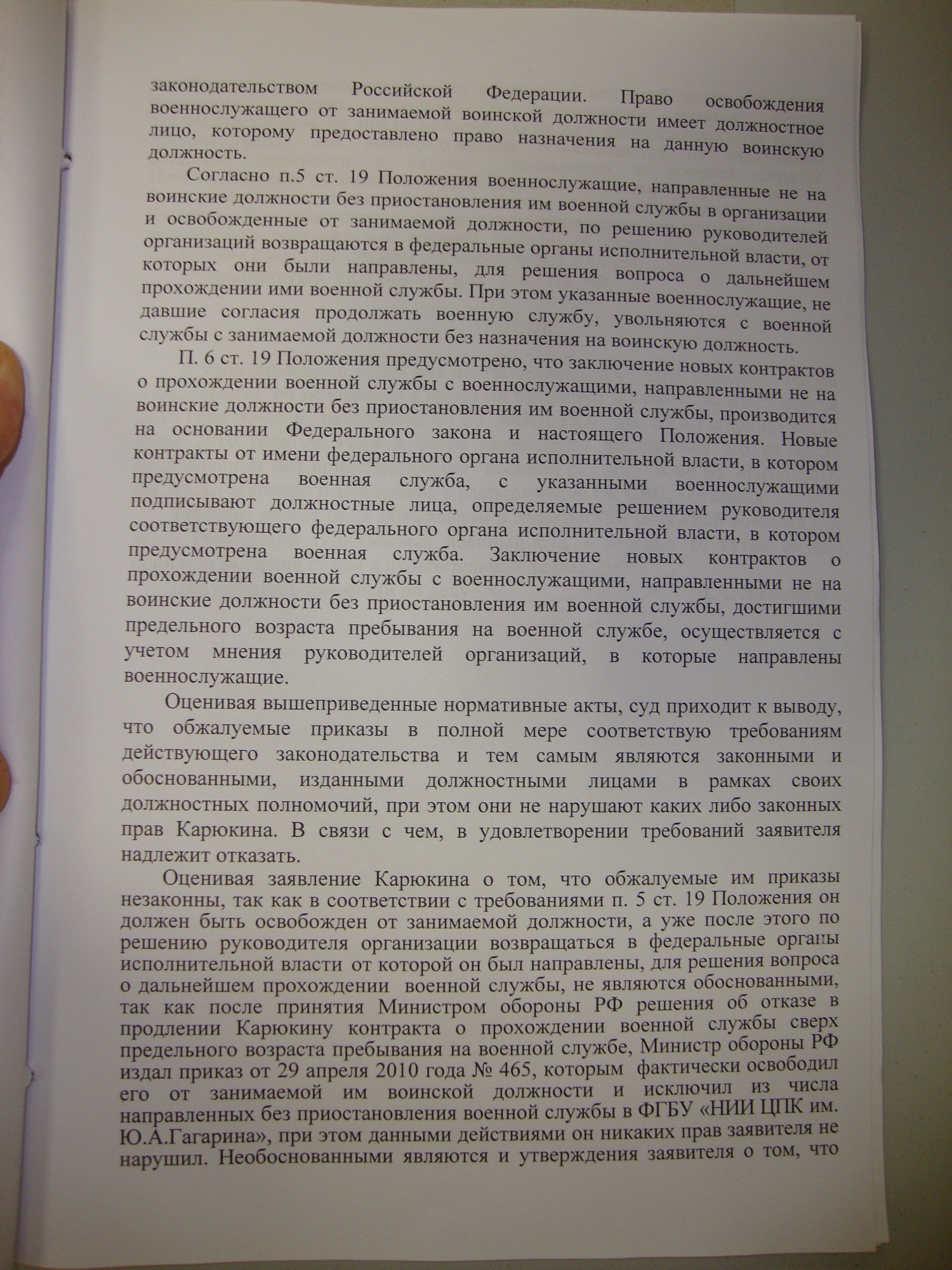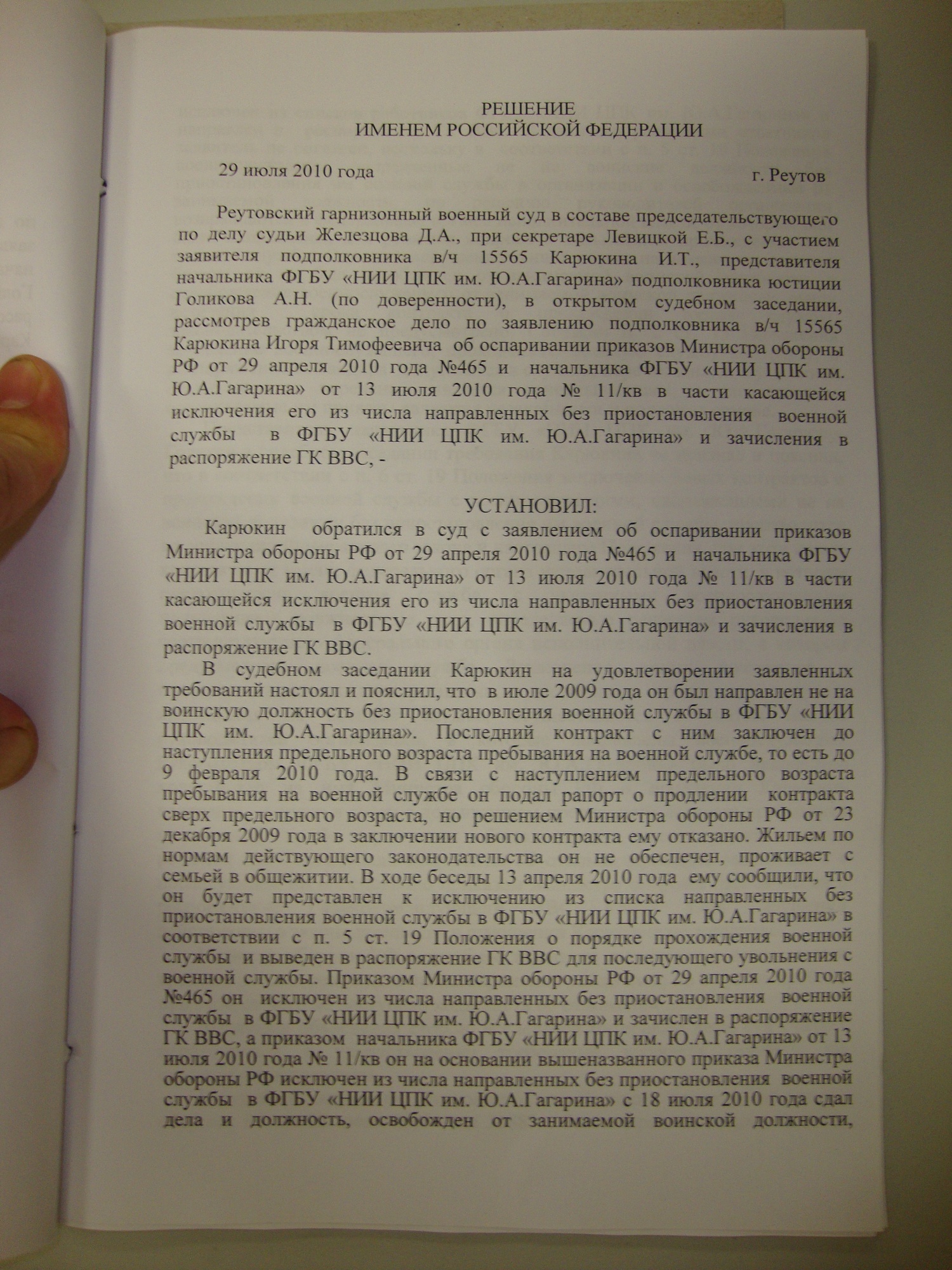 С решением Северодвинского гарнизонного военного суда от 19.08.2010 я не согласен.