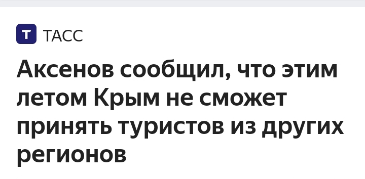 #12198ну это пока только рассуждения. но ведь и курорт не ограничивается гостиницами - полно частников. и если быть последовательными, то при нынешнем режиме, конечно, нужно закрывать (все курортные места). если мы, я имею ввиду официальное отношение, считаем, что вирус очень опасен и надо всех изолировать, то как быть, если понаедут скрытые носители, которых дома никто бесплатно не тестировал и что? куда их там девать? как лечить? хотя... как у нас лечат бессимтпомных? никак. типа они на карантине дома, ага, прям вижу эту картину, по телефону температуру сообщил и гуляй дальшезакрыли разве въезд на территорию республики?QR_BBPOST Крым до 1 сентября закрыт.