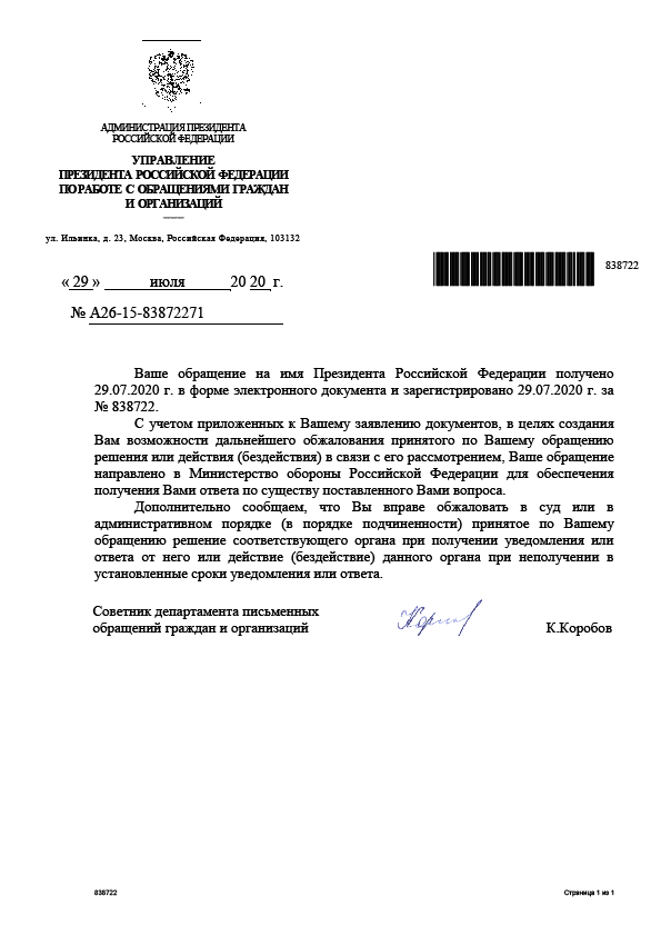 Ну, и в конце немного информации.Отправил снова письмо Президенту, в которое добавил абзац и приложения отписки от МО. Жду отписки от буферных чиновников.