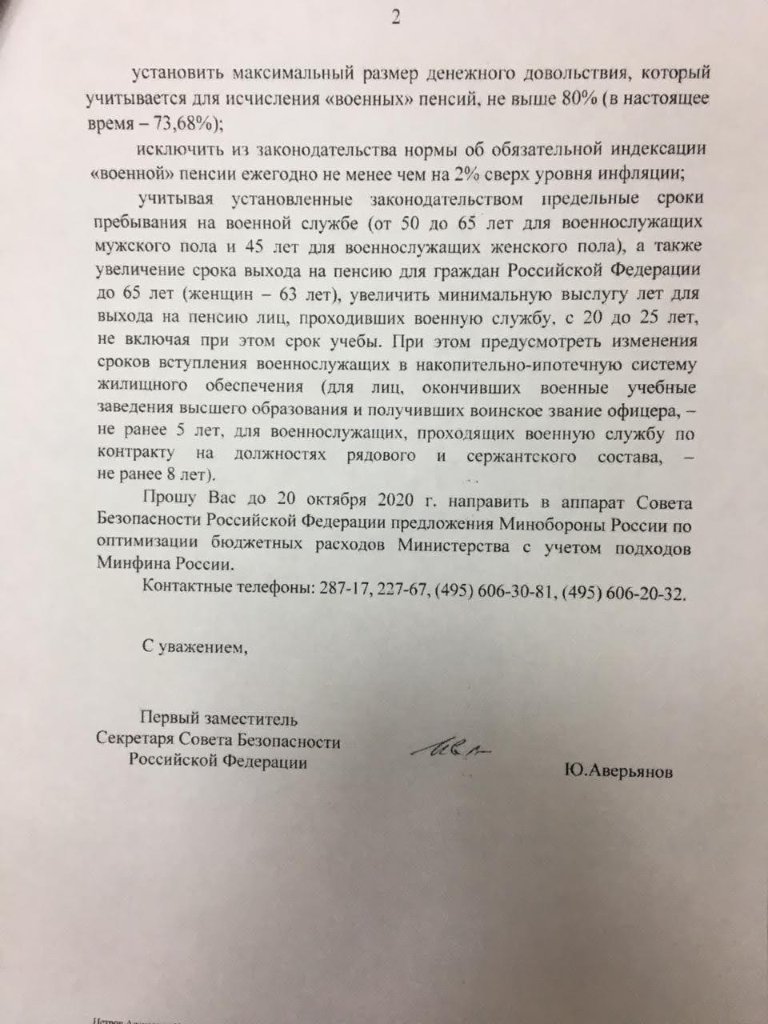 В Совет безопасности Российской Федерации направлена мотивированная позиция о неприемлемости данных предложений и отсутствии их поддержки со стороны руководства военного ведомства.