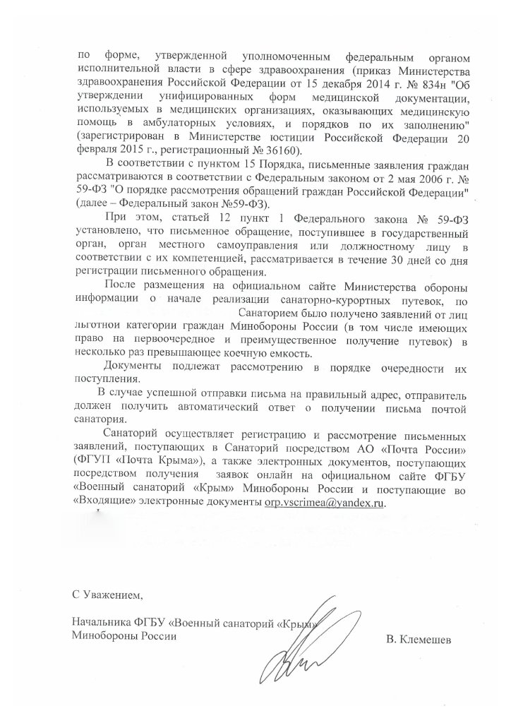 Прочитала письмо. И что??? Ничего нового я для себя не открыла. И кстати, санатории отведенные 30-дневные сроки рассмотрения наших заявок не нарушают.