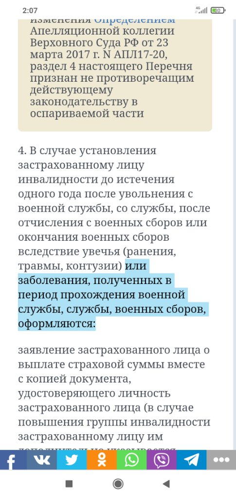 #2667Если считаете, что всё в порядке и страховку выплатят даже если в справке МСЭ указано "общее заболевание", то в чём вопрос?Посмотрел по ссылке, там нет ничего об общем заболевании...,и это страховой случай, там нет уточнений, там просто написано: установление инвалидности в течении года после увольнения, если заболевание получено в период прохождения ВС... Так у меня это и есть!