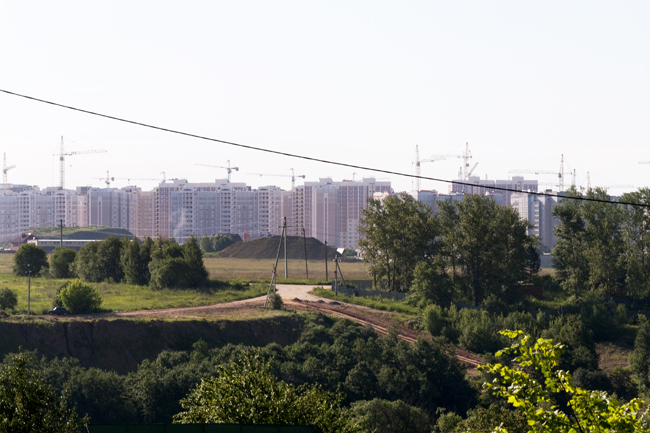 Стройка идет полным ходом. Не ожидал, что дома практически вдоль ул. Кирова. Без разрыва мкр. Кузнечики соединяется с мкр. Фетищево. Идет строительство "башен". Что примечательно - придорожный знак "Подольск" стоит сразу после "кузнечиков".