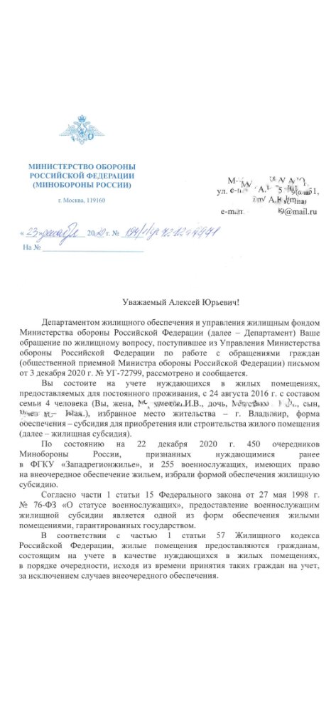 #55607Написал письмо в востокрегионжильё сегодня получил ответ.