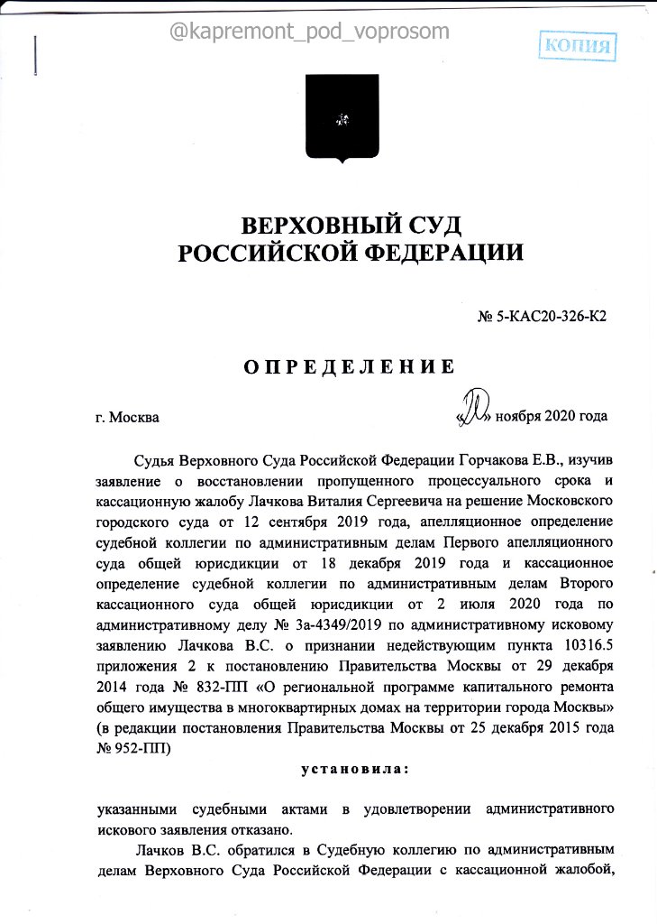 Мосгорсуд отменил Определение о возврате. Указал рассмотреть вновь.