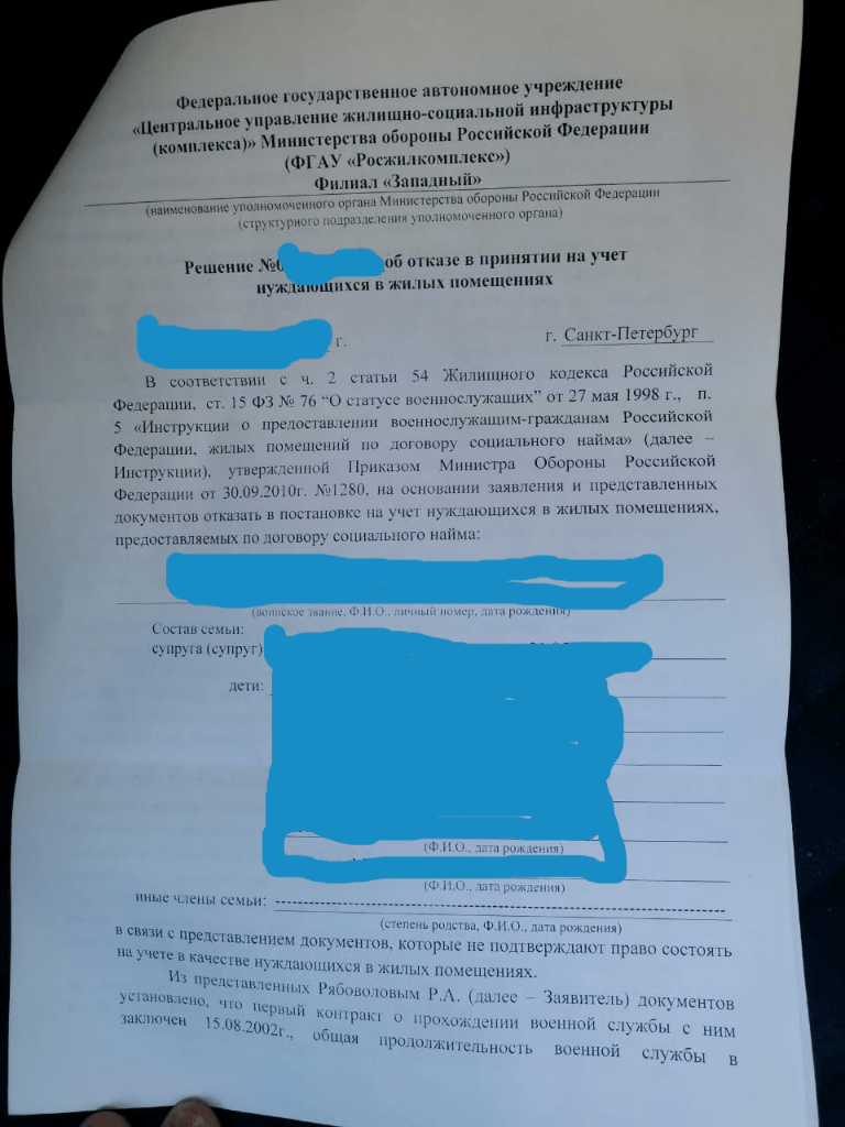 #3115Здравствуйте! Подал документы в "росжилкомплекс" на постановку в очередь нуждающихся в жилом помещении по договору социального найма. Вчера получил ответ. что отношусь к 16 категории участников НИС и мне отказано в признании меня нуждающимся в жилом помещении по договору социального найма.