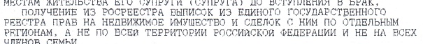 #1624А нельзя ли образец такой справки в студию? Скан или хотя-бы основные фразы, отражающие суть того, что там написано (нет в собственности недвижимости, или не было зарегистрировано сделок с недвижимостью с такого-то времени, или просто отсутствуют сведения в гос. реестре, или еще что). Сколько времени такую справку делают, и если не секрет, в каком регионе "любимой" страны такие уже выдают?Ну вот сегодня у нас некоторые взяли справки из рег. палаты по всем субъектам нашей любимой страны. В справке 30% субъектов отсутствует, как объяснил регистратор, отсутствующие субъекты не ответили на отправленные запросы. Среди этих субъектов в том числе Москва и Московская область. Вот так.