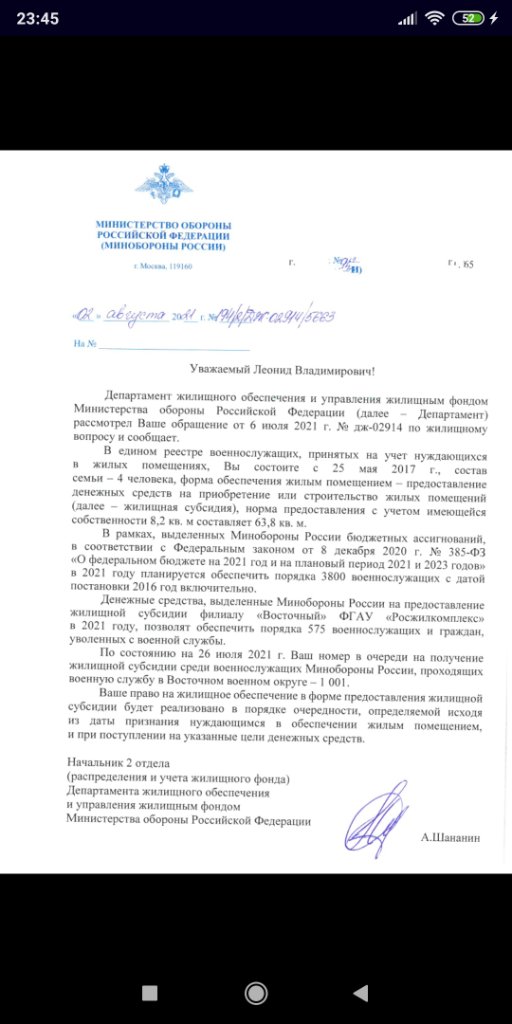 #58896Кстати, по поводу прямой линии к президенту я писала, мое обращение как обычно было перенаправлено в МО РФ, получили отписку, но сообщили о якобы нашем номере очереди, в январе он был 4 500- какой-то, точно не помню, указали что перед нами 1100 внеочереднеков.