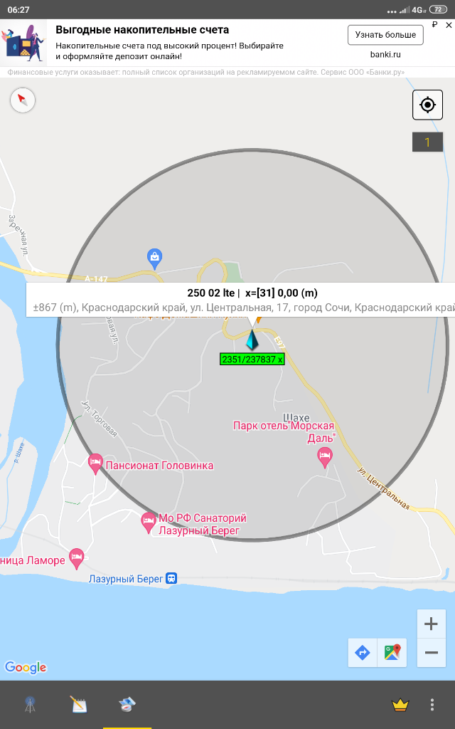 #281Скорость и направление на антенну Мегафон на пляже .
