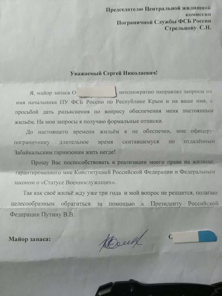 Адресок по моему был такой...101000 г. Москва, ул. Лубянка, д. 1/3 ФСБ России Председателю центральной жилищной комиссии Погран Службы ФСБ России Стрельцову С.Н.