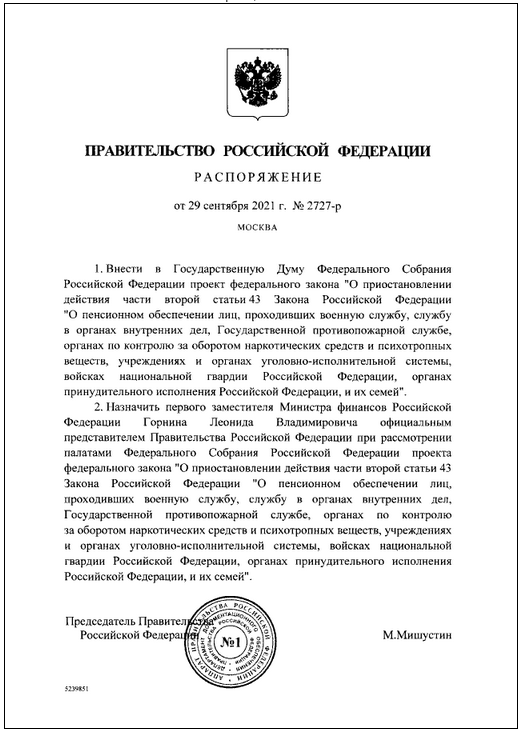 Распоряжение Правительства Российской Федерации от 29.09.2021 № 2727-р