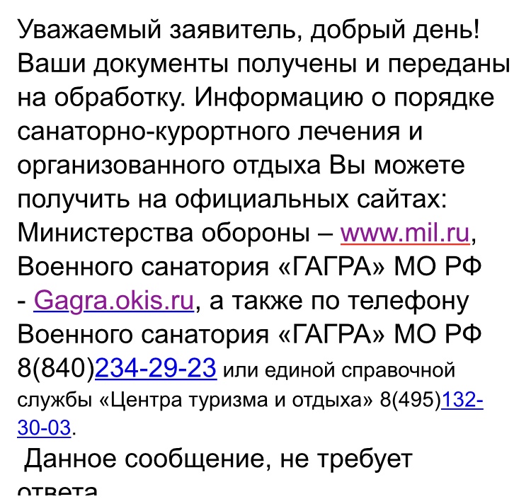 #17580Только что пришел ответ и из Гагры. Отправка была на эл.почту в 00.01.
