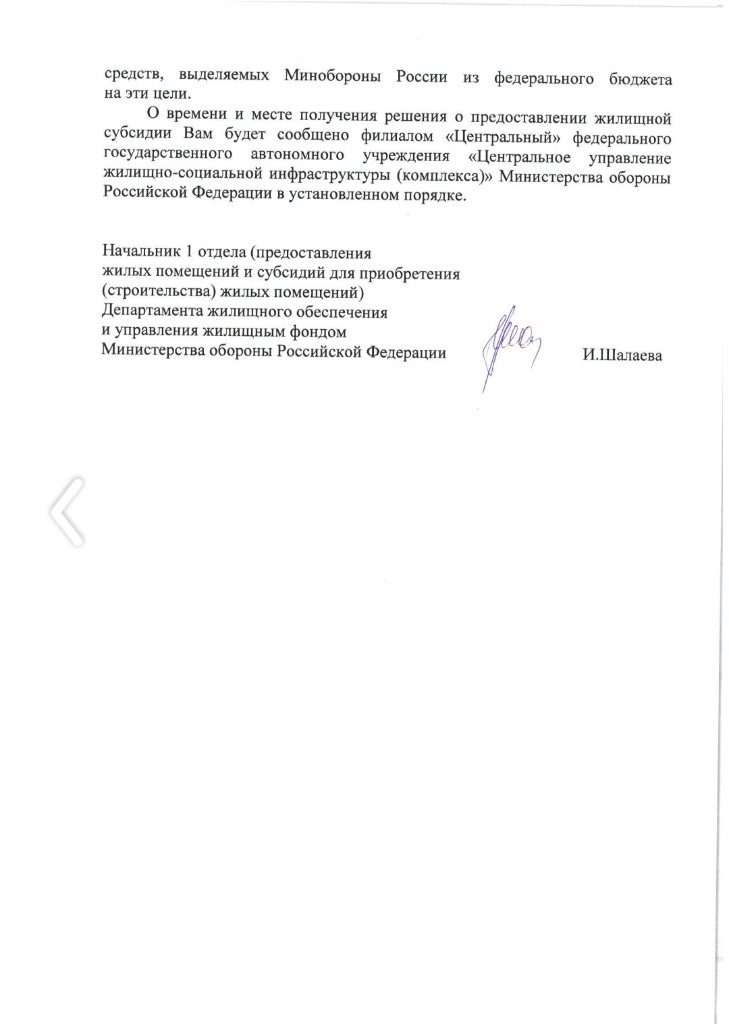 Re: Обращения очередников МО РФ по жилищной субсидии