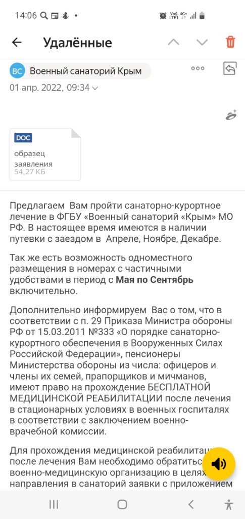 #334У нас с 9 апреля путевка в Ялту, отменять не собираемся. Билеты на поезд уже куплены по ВПД. Вернемся отпишусь об обстановке в Крыму.Да как-то и не до юмора.... Доля правды есть в этих опасениях. Билеты в Крым пока не купили, а теперь подождем. На поезде из Сибири, конечно, не поедем, а на самолёте страшновато стало, даже если Симферополь к июню откроют.... Зато санаторий второй раз шлёт письмо про сертификаты, пишут, что сертификат переболевшего действителен 6 месяцев.