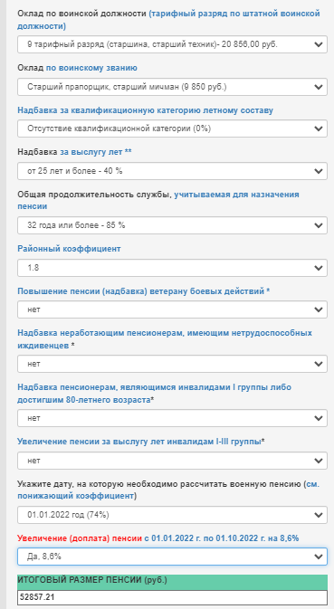 7. Все калькуляторы в сети - виртуальные до выхода постановления Правительства о размерах окладов по ВЗ и ВД.