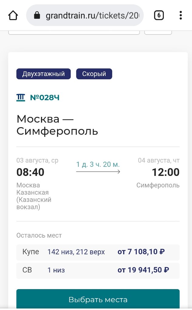 #19412Да билеты купили и на самолет и на Таврию, правда пришлось обратится в пассажирские перевозки и они популярно объяснили кассирам как продавать билеты на Таврию. Успели взять нижние места туда и обратно.На Таврию тоже ВПД выписали? Уже покупали билеты? Интересно, их можно купить в кассах РЖД. Раньше был отдельный сайт для покупки билетов поездом в Крым из-за того, чтобы РЖД не попала под санкции.Мы из Сибири тоже планировали прямо до Симферополя самолетом, но небо закрыли. Пришлось сдать билеты и сдать справку в ВК и получить новые проездные самолетом до Москвы а далее поездом Таврией до Симферополя и обратно также.UOPP, именно так, мой отпуск рассчитан под самолёт. А мужу и так 21 день безделья кажется вечностью....