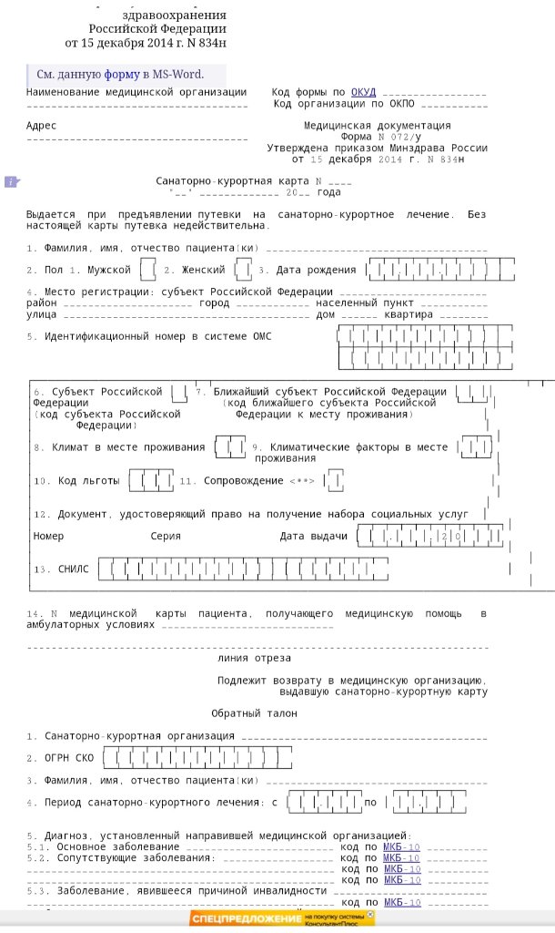 #19633А за сколько времени нужно оформлять санаторно курортную карту 72у?