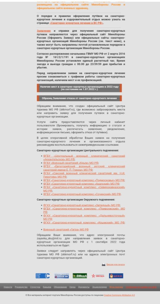 Скоро предстоит поездка на отдых . Обязательно зайду в отдел распределения путёвок и постараюсь узнать на месте, останется ли возможность направления заявок через сайты МО и санатория в режиме онлайн, а также на электронную почту санатория.