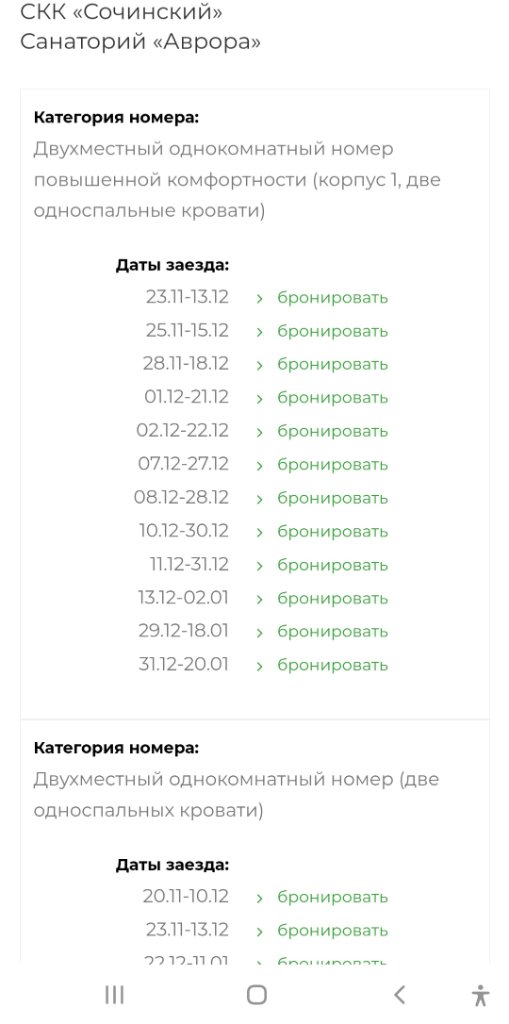 4. Заполняя "тестовый" вариант бронирования, у меня возник еще один любопытный вопрос в свете того, что мы с приятельницей не являемся членами одной семьи. По идее, каждая из нас должна выбрать санаторий, ОДИНАКОВУЮ ДАТУ заезда и конкретный тип номера. Нам нужен 2-х местный на одну и ту же дату заезда (на наличие одноместных номеров рассчитывать не стоит). Каким образом надо бронировать, чтобы всё совпало????