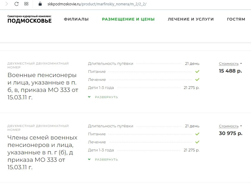 #21331https://skkpodmoskovie.ru/product/marfi ... a/m_2/2_2/Где можно посмотреть цены? На оф.сайте санатория Марфинский цены указаны 2019 г. Может быть не там смотрю?