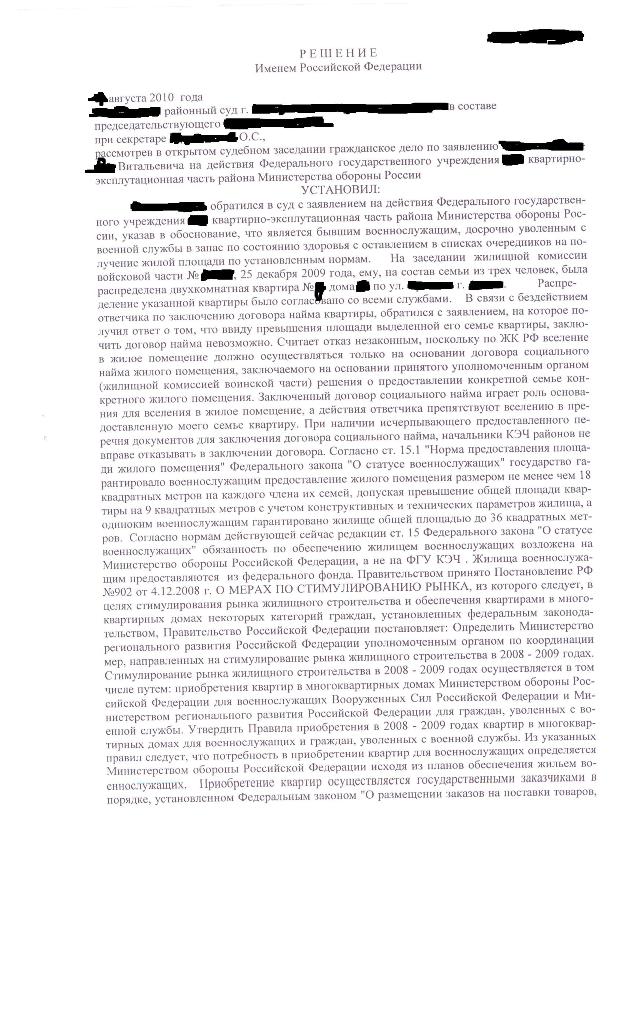 Если не жалко, сбросьте пожалуйста решение суда....да,я судился уже гражданским,поэтому обращался в районный суд