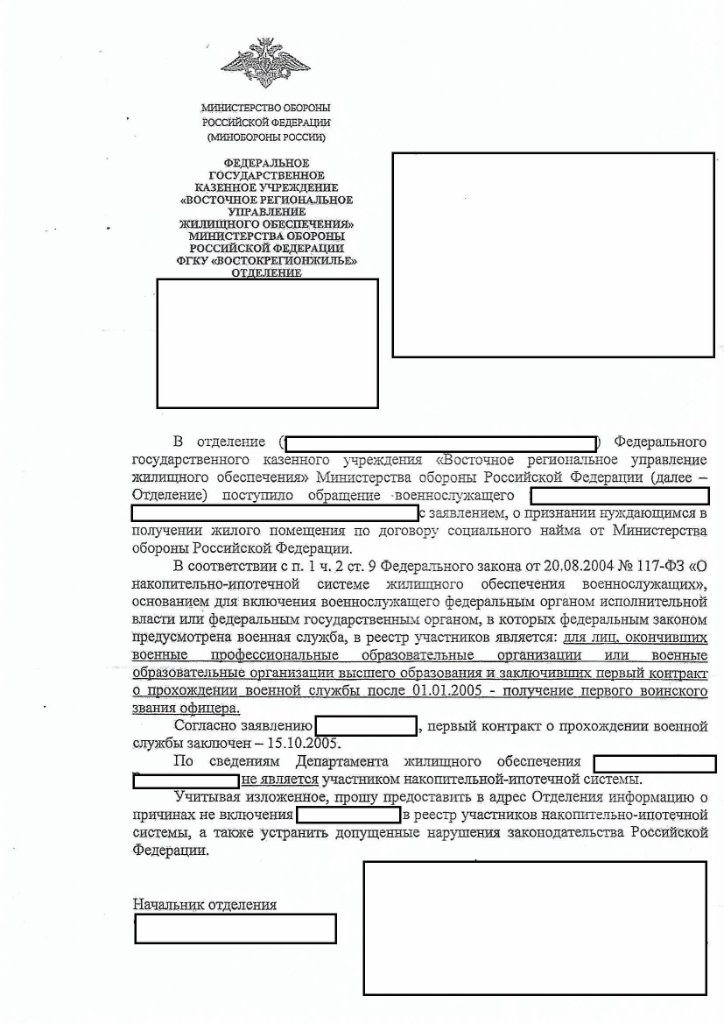 По итогам рассмотрения рапорта Паршина, административному истцу дан ответ, которым ему отказано в его реализации, со ссылкой на положение ч. 3 ст. 9 Федерального закона от 20 августа 2004 года № 117 ФЗ «О накопительно-ипотечной системы жилищного обеспечения военнослужащих», которое содержит исчерпывающий перечень оснований для исключения из реестра участников НИС, среди которых такое основание, как волеизъявление (рапорт) на исключение из реестра, отсутствует.