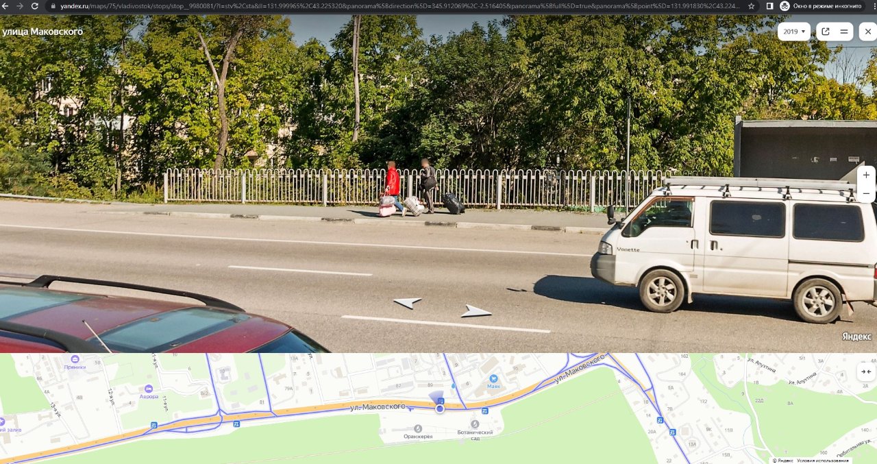 #93Яндекс-панорамы в 2019 году зафиксировали счастливую семью военпенсов, вышедших на ост. "Ботанический сад" и направляющихся в "Океанский"
