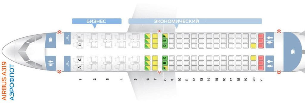 На А321 даже на усечённом бизнесе места эконом начинаются с 8 ряда (о чём я раньше и писал, на остальных среднемагистральных с 6 ряда)
