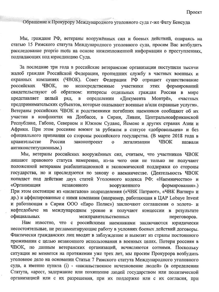 #35В Москве прошло собрание ветеранов ЧВК, на котором они приняли обращение в Международный уголовный суд с просьбой начать расследование в отношении владельцев российских ЧВК, ведущих свою деятельность нелегально и с нарушением всех законов - российских и международных.