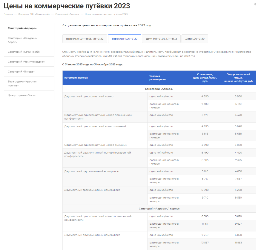 Прайс Авроры выложил, а какие цены в Южном в горячий сезон? ЦБ свои цены не очень афиширует. Знаю, что одно лечение в ЦБ ближе к 1500 руб/день, в ВС цена ниже (для льготников в 2 раза - примерно 650 руб, для коммерческих около 1000 руб - это для налог. вычета).
