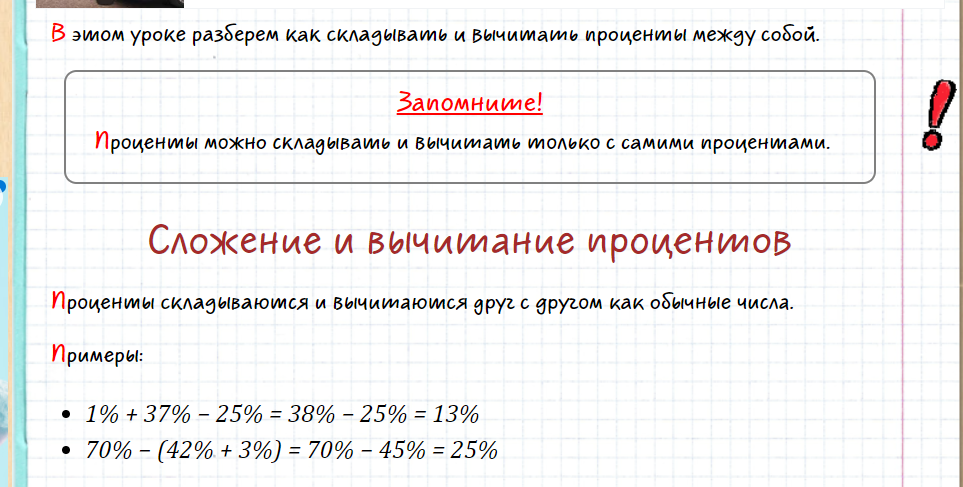 Процент. Как мы узнали, увеличение на процент означает увеличение на 1 сотую, а так как у нас увеличение идет на 50% (то есть 50 сотых), то расчет будет выглядеть так: