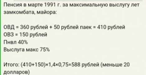 Он даже выложил расчёт пенсии замкомбата в марте 1991 года и предложил рассчитать его пенсию на сегодняшний