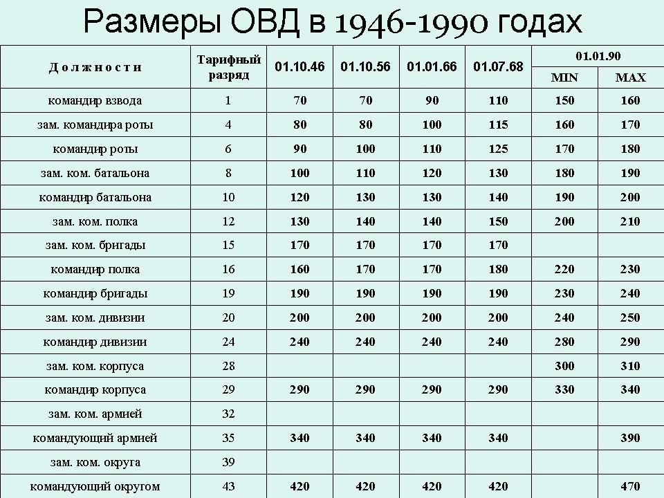 ОВД замкомбата в 1988 и в 1989 (130р) сильно отличались от ОВД с 01.01.1990 года (у замкомбата 180р).