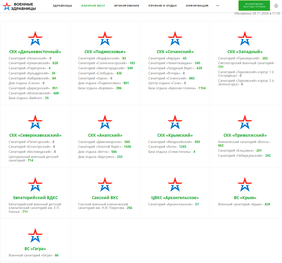 Правильно делать заявку на сайте Военные здравницы в 00.00 01 ноября