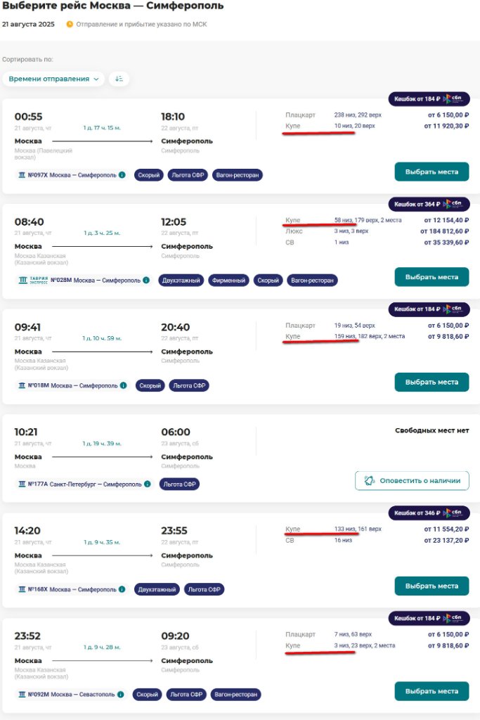 Вон даже сейчас, через 6 часов после старта продаж билеты есть на ВСЕ поезда и даже низ купе!