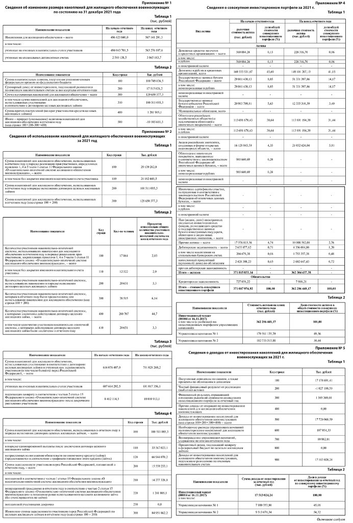 Приложение 1. Сведения об изменении размера накоплений для жилищного обеспечения военнослужащих по состоянию на 31.12.2021 г.