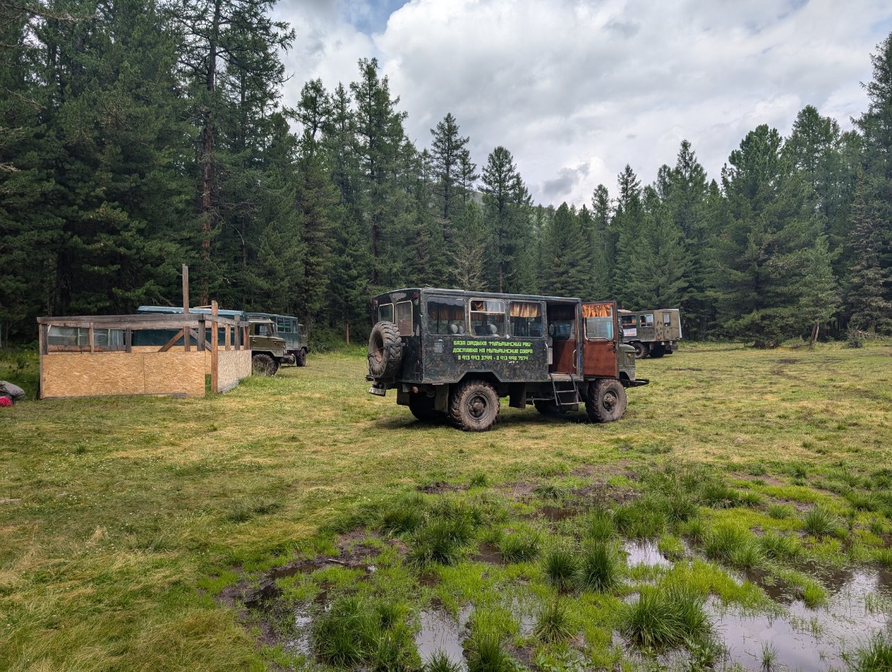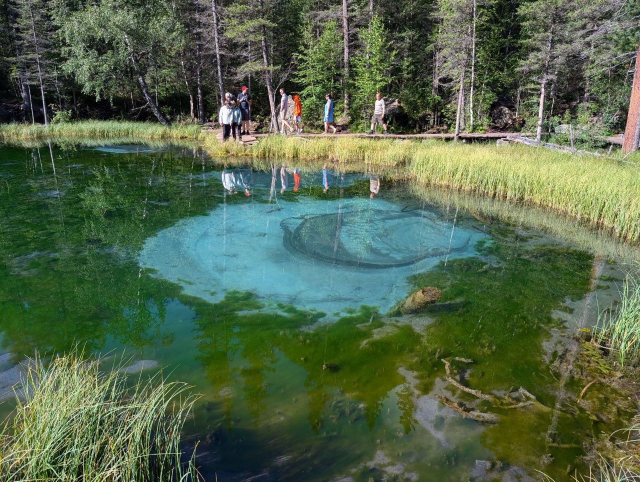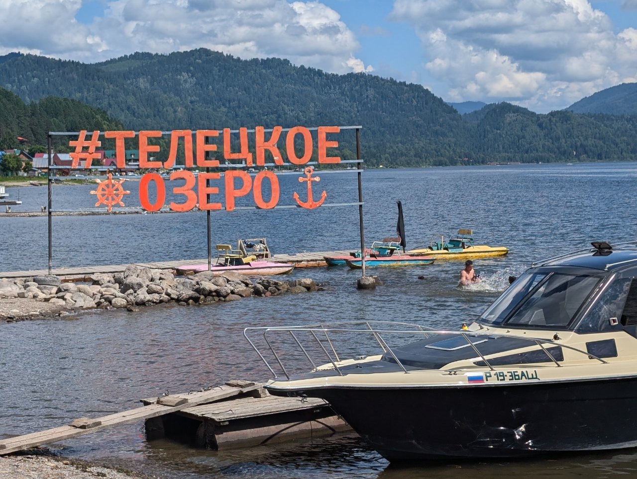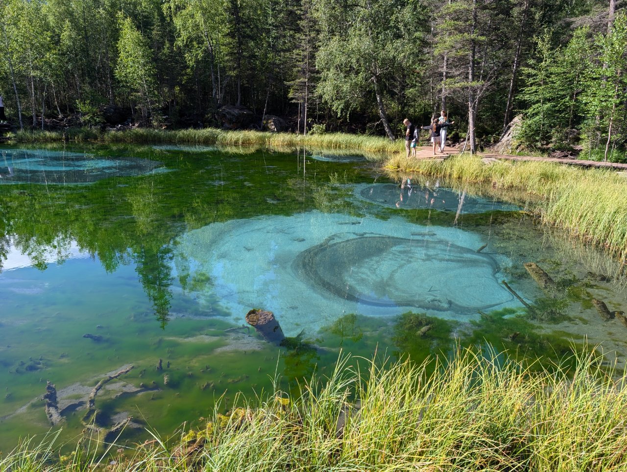 По той причине, что вода в реке, как и в озере холодная, сделали там надувной бассейн, в котором можно купаться.
