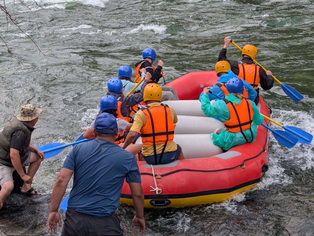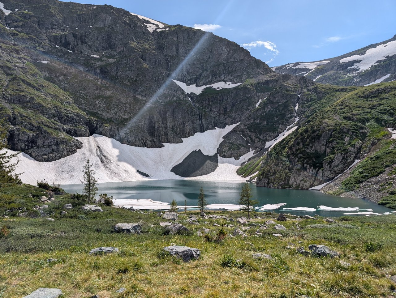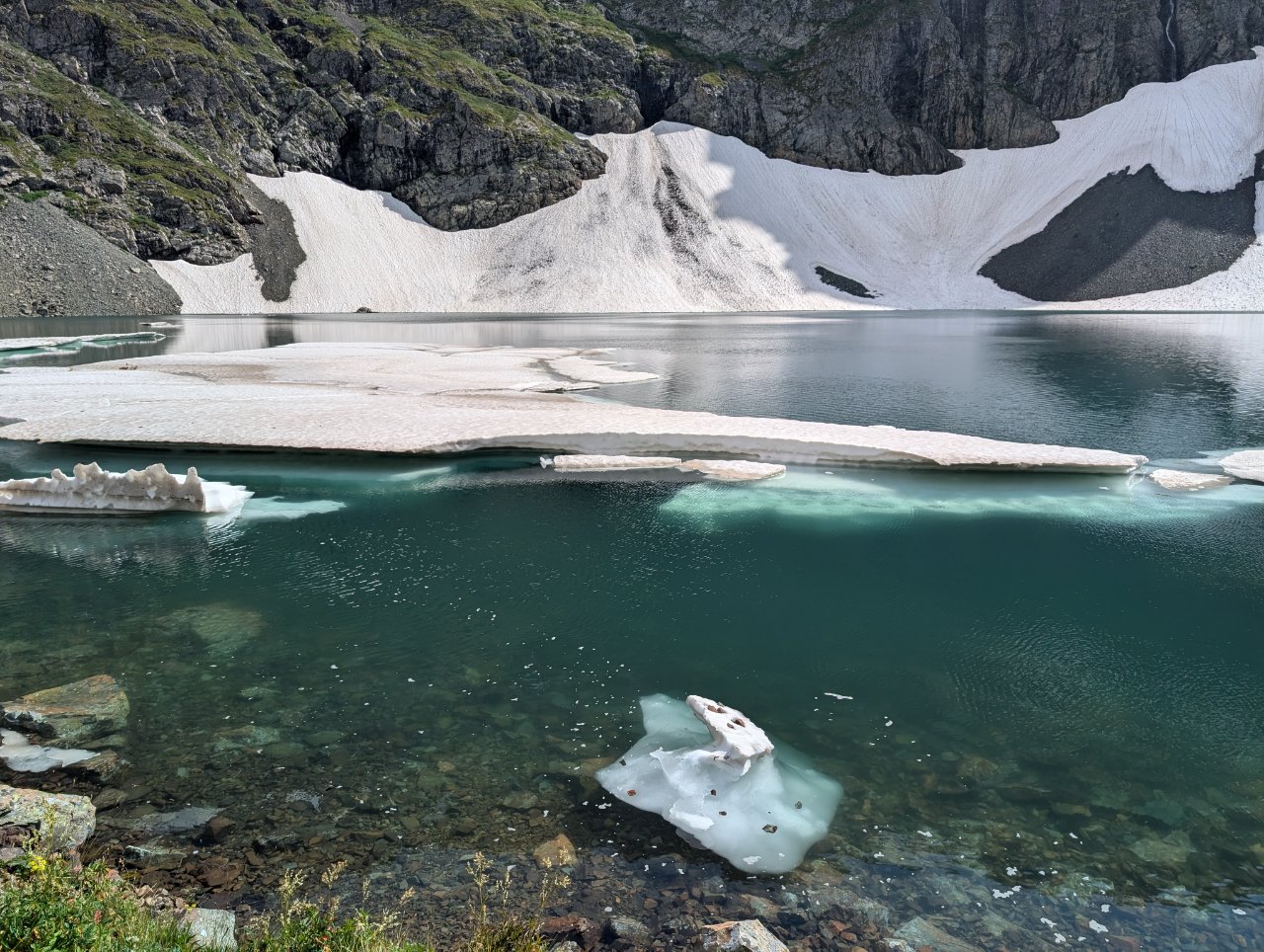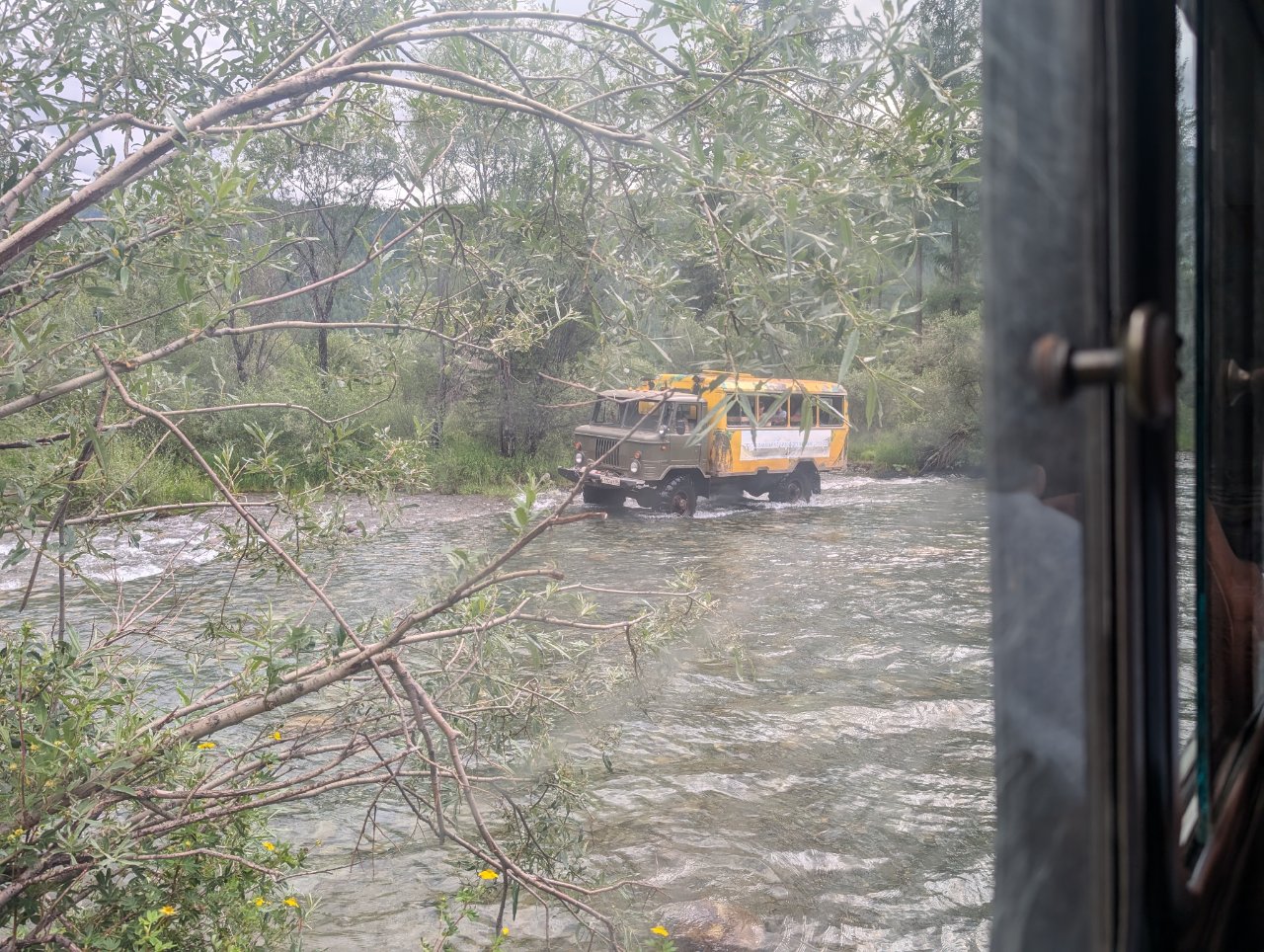 По той причине, что вода в реке, как и в озере холодная, сделали там надувной бассейн, в котором можно купаться.