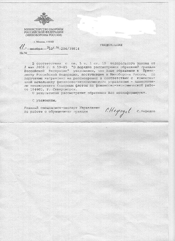 одному товарищу написали от президента, что отправили в мо. из мо написали, что направили в финслужбу северного флота.Из МО, как положено, будет ответ - пшли нах....