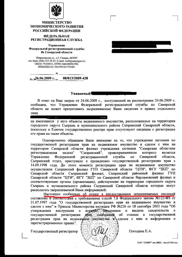 В приложенном Вами документе есть внизу ссылка, что информация предоставлена на основании п. 7,8 122-ФЗ от 1997 года. В нем было написано:А как это решение касается нас, ведь нам не нужен отказ?